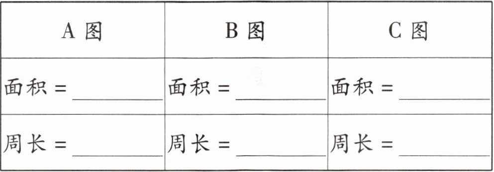 3. 下面的图形都是由9个面积是1平方厘米的小正方形拼成的。