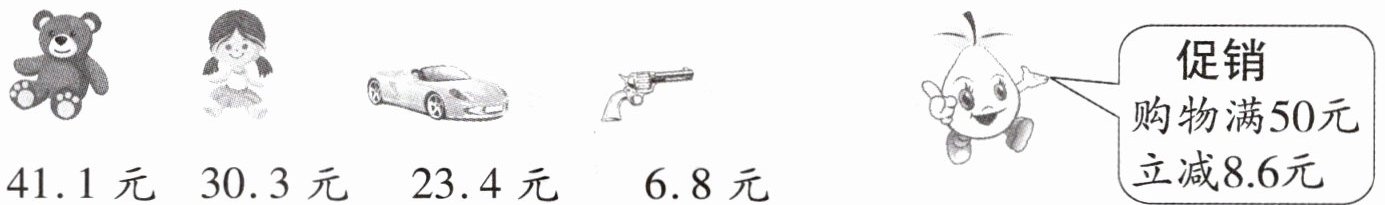(1)买一个玩具小熊和一个洋娃娃,一共需要多少元?