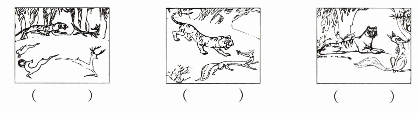 虎求$^{②}$百兽而食之,得狐。狐曰:“子无敢食我也。天帝使$^{③}$我长$^{④}$百兽,今子食我,是逆天帝命也。子以我为不信,吾为子先行,子随我后,观百兽之见我而敢不走乎?”虎以为然$^{⑤}$,故$^{⑥}$遂与之行。兽见之皆走。虎不知兽畏$^{⑦}$己而走也,以为畏狐也。