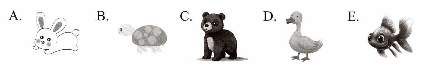 班级里在开展 Pet Show 活动,请根据描述,选出对应动物图片。