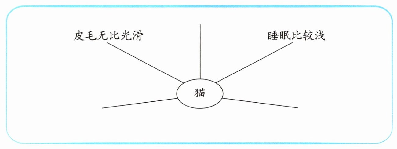 最后一个自然段介绍了猫的很多特点,请用思维导图理一理,可以自己加线噢。