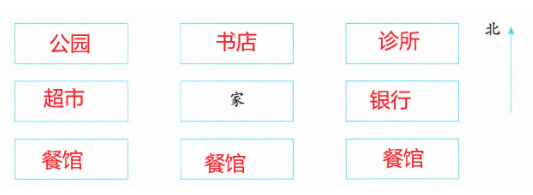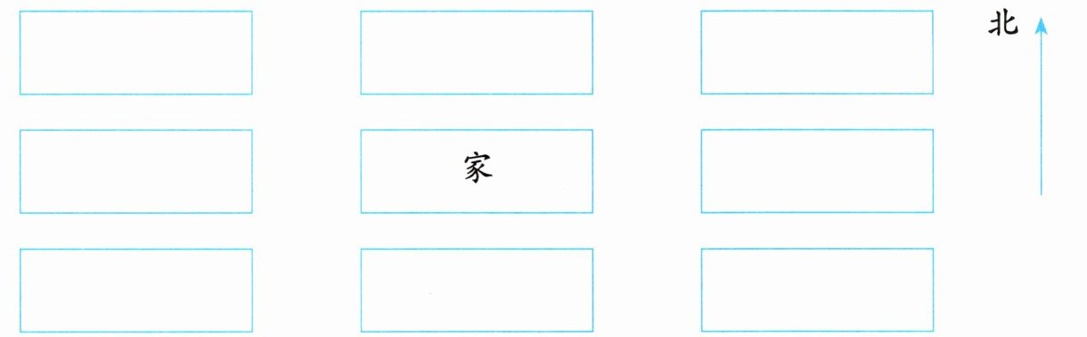 请你调查家周围分别有什么建筑,并把下图填写完整。