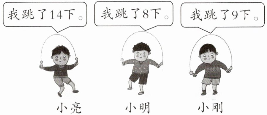 (1)小亮比小明多跳多少下?