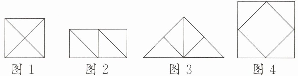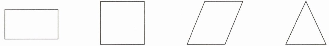 小猫先动手,它拼出一个正方形(如图1),小狗接着拼出一个长方形(如图2)。小猫又拼出一个三角形(如图3),小狗立即又拼出一个空心的正方形(如图4)。除此之外还能拼出什么图形呢?