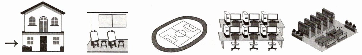 1. first floor 2. art room 3. playground 4. computer room 5. library