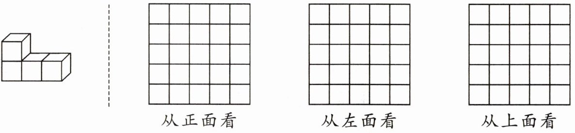 5. 先用 4 个相同的小正方体摆出如下图的长方体,再按要求添一个同样的小正方体。