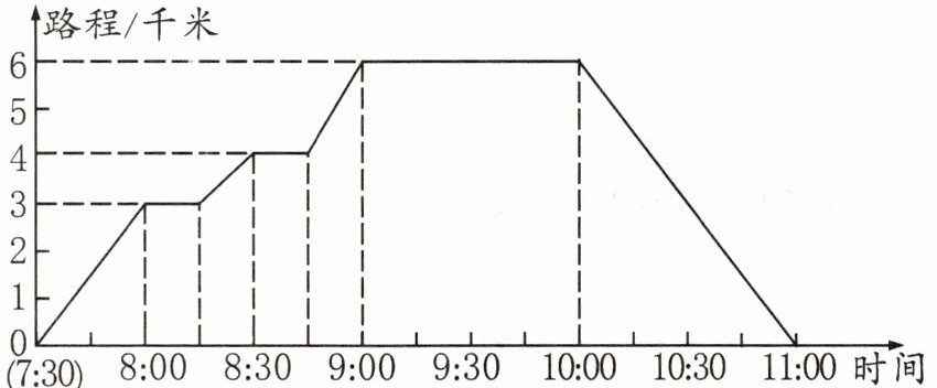 1. 小明到离家 6 千米处的奶奶家看望奶奶,请根据下面的折线统计图回答问题。