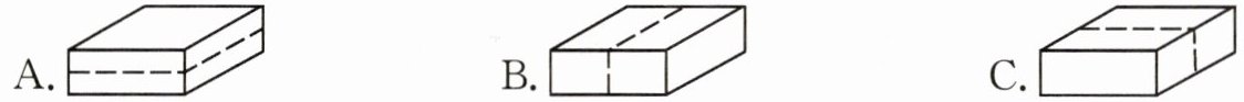3. 把一个长34cm,宽21cm,高12cm的大长方体切成两个小长方体,下图中表面积增加最多的切法是(