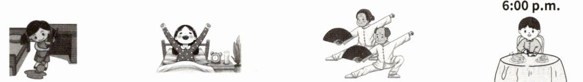 一、从方框中给下列图片选择合适的短语,并写在横线上。