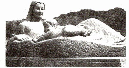 雕塑的主体部分由神态安详的“母亲”和一个活泼可爱的“婴儿”组成。