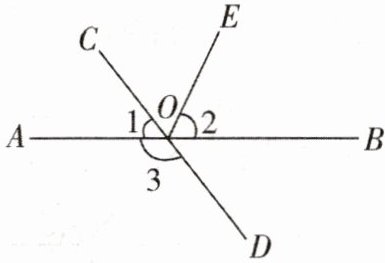 7. 如图,直线$AB$,$CD$相交于点$O$,$\angle 2 - \angle 1 = 15^{\circ}$,$\angle 3 = 130^{\circ}$,则$\angle 2$的度数是(