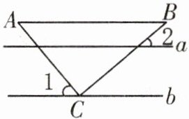 8. 如图,直线$a // b$,$Rt\triangle ABC$的直角顶点$C$在直线$b$上。若$\angle 1 = 50^{\circ}$,则$\angle 2$的度数为(