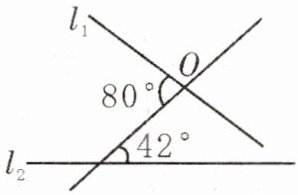 5. 如图,若要使$l_{1}$与$l_{2}$平行,则$l_{1}$绕点$O$至少旋转的角度是(