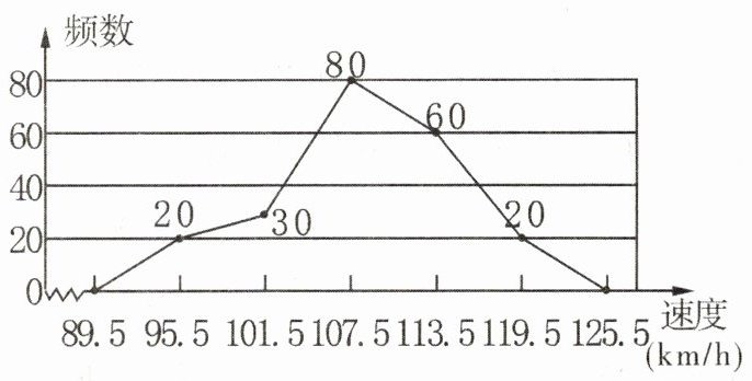 17. 超速行驶是交通事故频发的主要原因之一。交警部门统计某日7:00~9:00经过高速公路某测速点的汽车的速度,得到如图所示的折线图。若该路段骑车限速为110 km/h,则在该时段超速行驶的汽车有______辆。