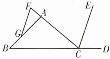 20. 如图,已知$CE$平分$\angle ACD$,$F$为$CA$延长线上一点,$FG // CE$,交$AB$于点$G$,$\angle ACD = 140^{\circ}$,$\angle B = 45^{\circ}$,求$\angle AGF$的度数。