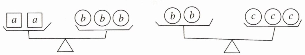 4. 天平中的物体 $a$、$b$、$c$ 使天平处于平衡状态,则物体 $a$ 与物体 $c$ 的质量关系是( )。