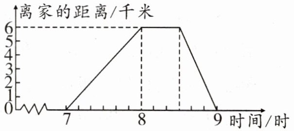 小明骑自行车到离他家 6 千米远的森林公园去玩,请根据下面的折线统计图回答问题。