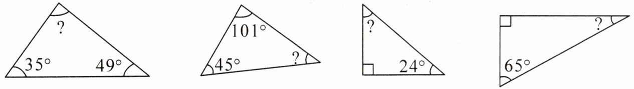 2. 下面每组中3个角的度数,不可能出现在同一个三角形中的是( )。