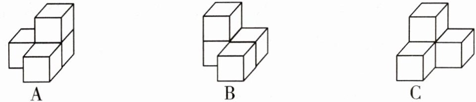 5. 下面的三个立体图形,从上面看,形状与其他两个不相同的是( )。