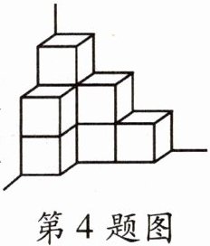 4. 几个同样大小的小正方块堆放在墙角处(如右图),每个小正方块的棱长是 2 cm,这堆小正方块的体积是( )$cm^{3}$,这堆小正方块露在外面的面的面积是( )$cm^{2}$。