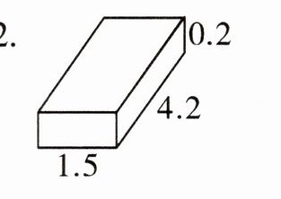 1.S=2×(4×5+4×3+3×5)=94(cm²) V=4×5×3=60(cm³) 2.S=2×(1.5×4.2+1.5×0.2+4.2×0.2)=14.88(cm²) V=1.5×4.2×0.2=1.26(cm³)