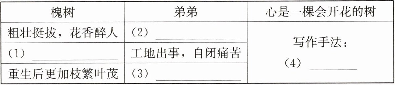 (1)被拦腰截断(2)采摘槐花,开心愉悦(3)走出低谷,开始新生活(4)托物言志