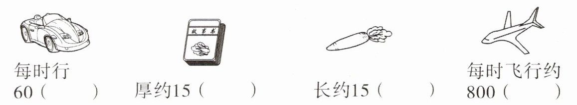 每时行60( ) 厚约15( ) 长约15( ) 每时飞行约800( )