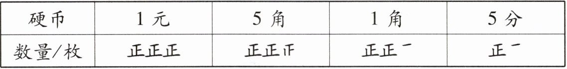 3. 下面是对存钱罐中各种硬币数量的记录。