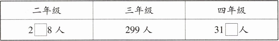 3. 李辉同学调查了某校二、三、四年级人数后,制成了下面的表格,请你根据该表格完成下面各题。