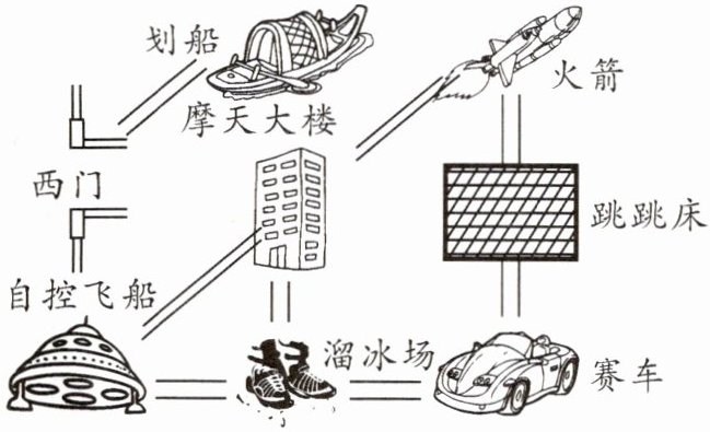 当王军看溜冰场的时候,面朝南。当他看其他场地的时候,面朝哪个方向?