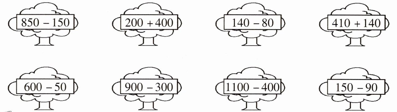 答案:$850 - 150$与$1100 - 400$相连;$200 + 400$与$900 - 300$相连;$140 - 80$与$150 - 90$相连;$410 + 140$与$600 - 50$相连。