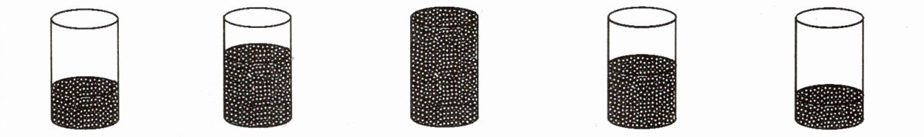 如果将第一个容器中的液体量看作一份,通过观察比较,第二个容器中的液体量大约是第一个容器的$2$倍,第三个容器中的液体量大约是第一个容器的$3$倍,第四个容器中的液体量比第一个容器的$2$倍少一些,第五个容器中的液体量比第一个容器的$2$倍多一些。