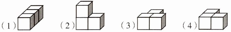 小明通过观察上面的四个物体看到了 A、B 两种形状,如图:$\underset{(A)}{□ }$$\underset{(B)}{□ □ }$