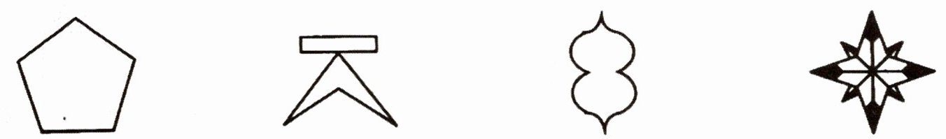 四、已知图中的图形都是轴对称图形,请你画出它们的对称轴。