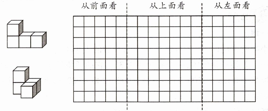 五、摆一摆,在方格纸上画出从前面、左面和上面看到的图形。