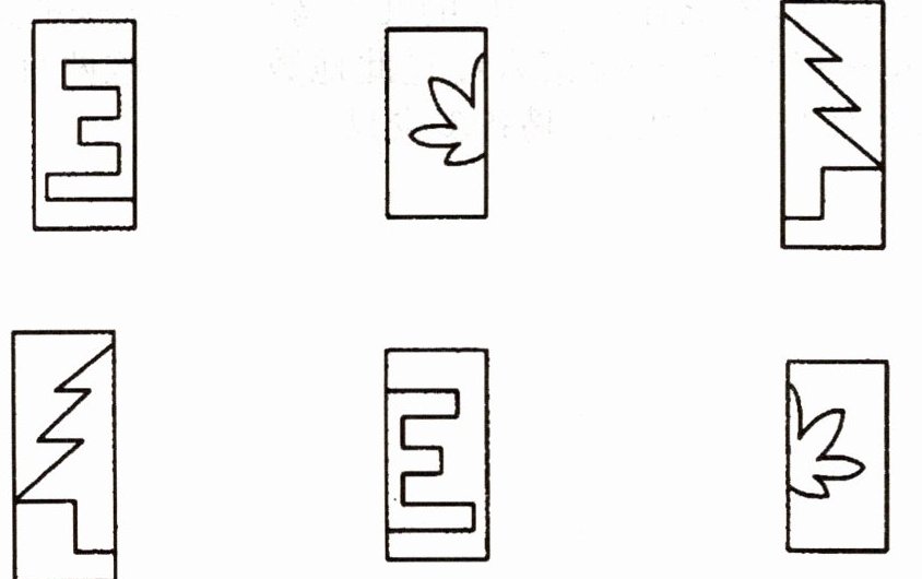 四、连一连。(哪两幅图可以拼成一幅完整的图案,请分别连起来)