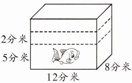 右图是一个玻璃鱼缸,长、宽、高分别是12分米、8分米、9分米。