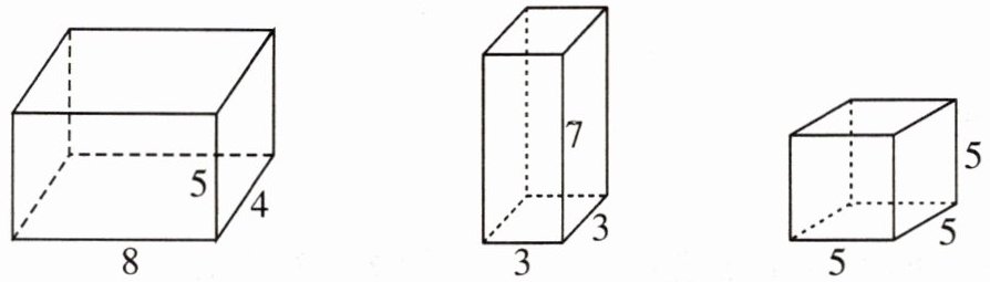 8×5×4=160(cm³) 3×3×7=63(cm³) 5×4×5=125(cm³)
