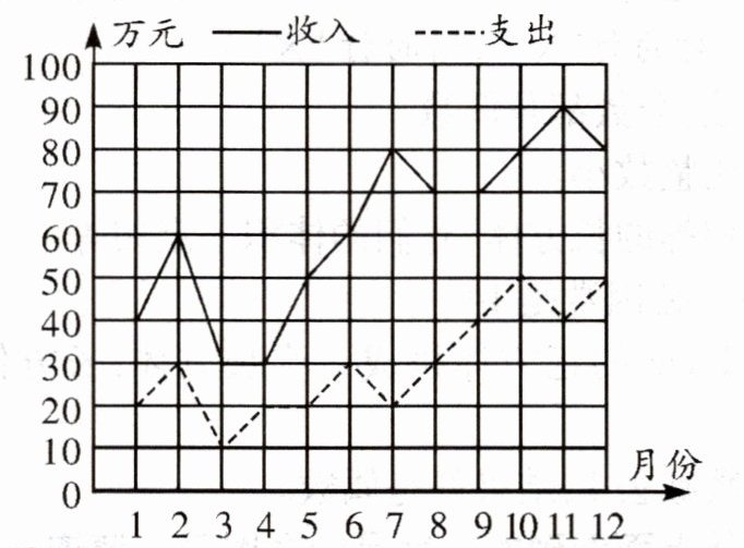 1. ( )月份收入和支出相差最小,9 月份收入和支出相差( )万元。