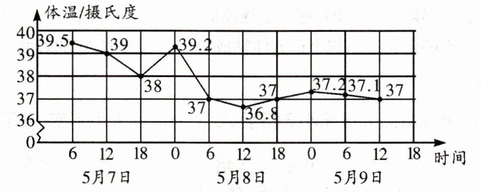 1.6小时 2.最高体温是39.5摄氏度,最低体温是36.8摄氏度 3.好转