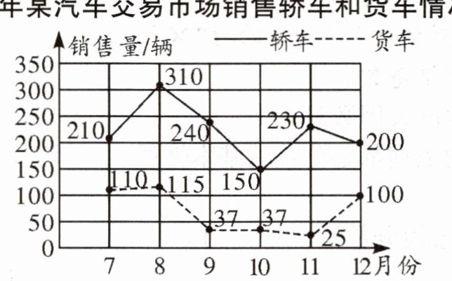 七、如图是 2019 年下半年某汽车交易市场销售轿车和货车情况的统计图。