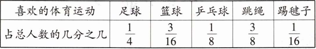 1. 喜欢三种球类运动的人数占总人数的几分之几?