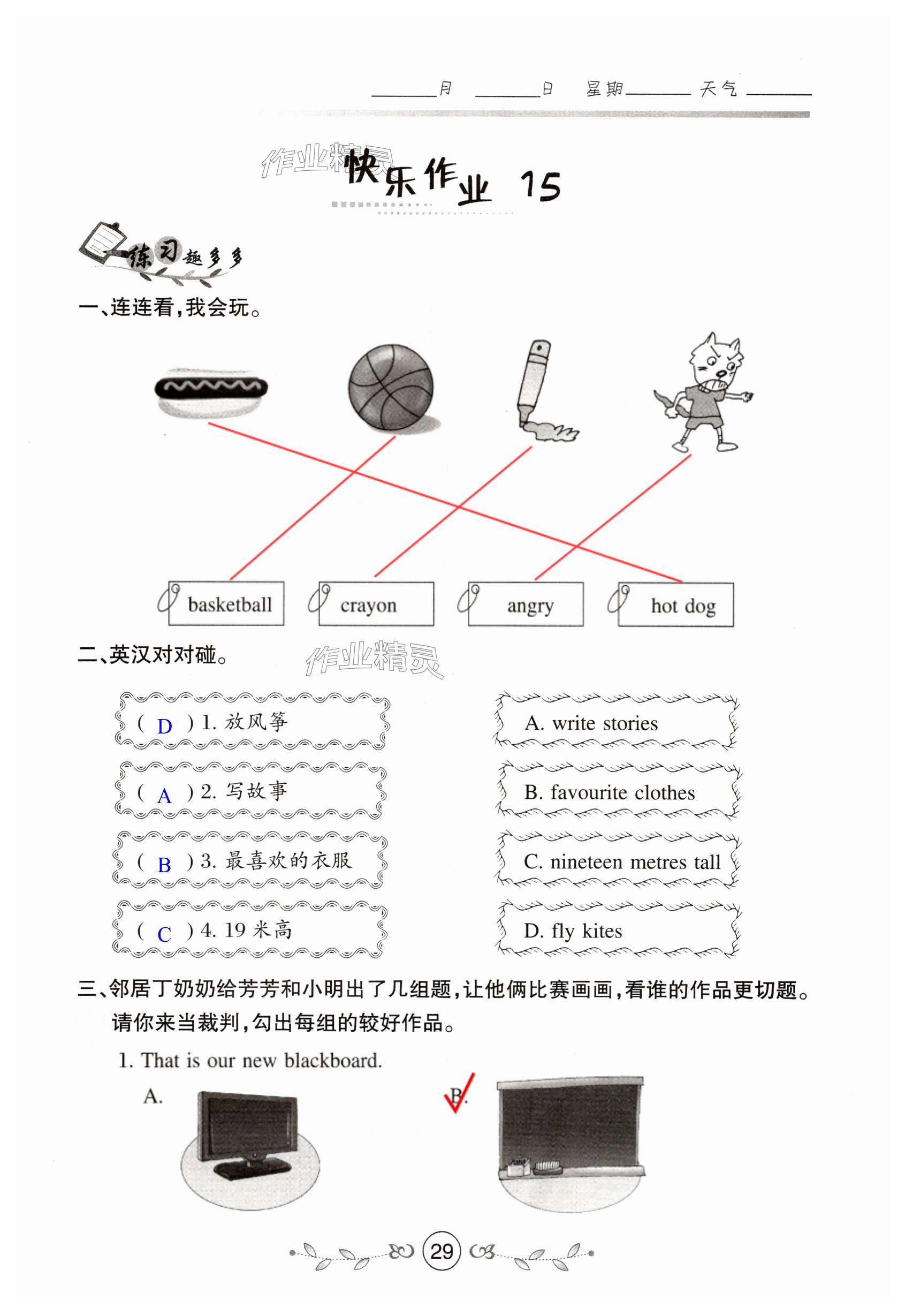 注:目前有些书本章节名称可能整理的还不是很完善,但都是按照顺序排列的,请同学们按照顺序仔细查找。练习册 2025年书香天博暑假作业西安出版社四年级英语冀教版 答案主要是用来给同学们做完题方便对答案用的,请勿直接抄袭。