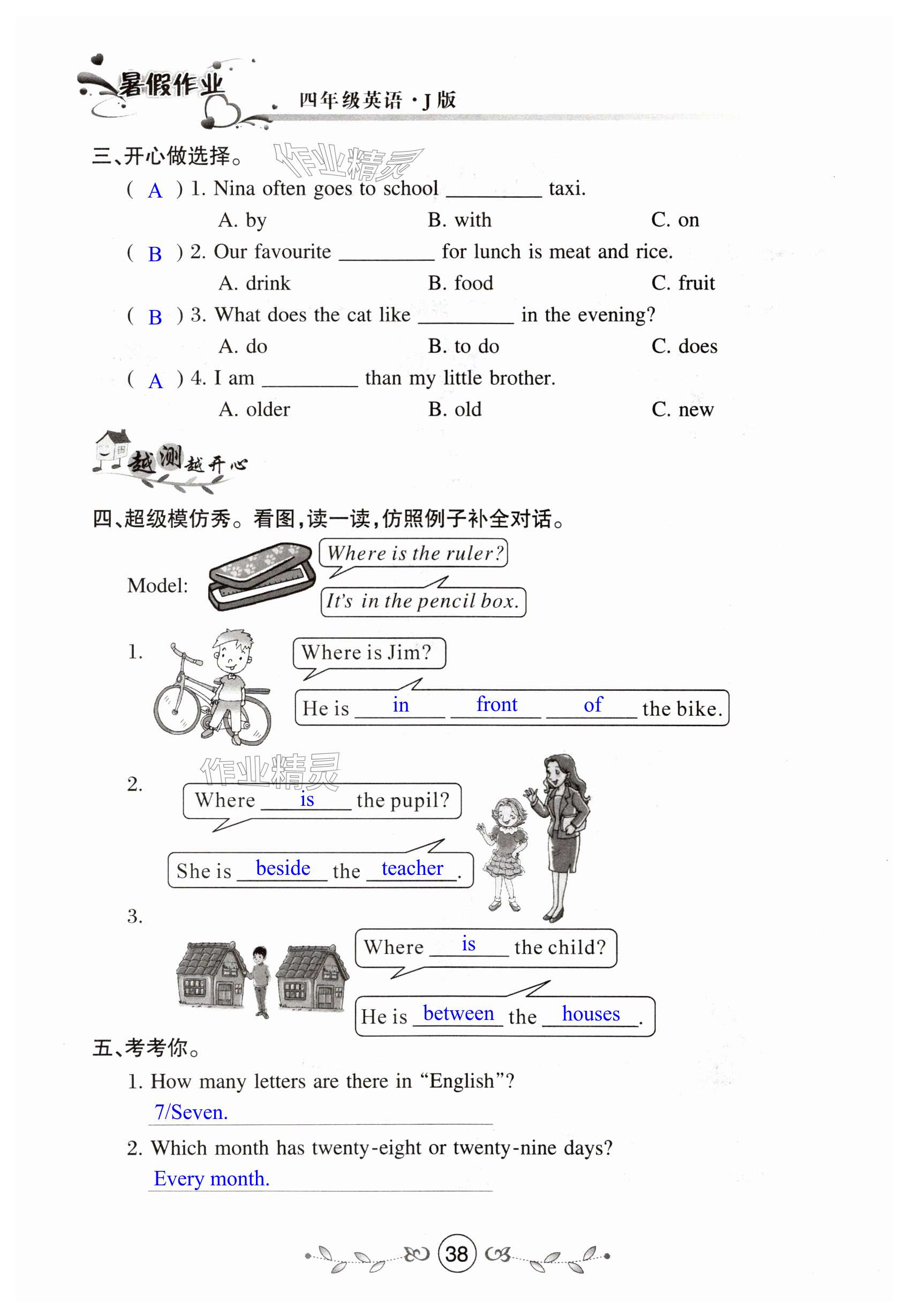 注:目前有些书本章节名称可能整理的还不是很完善,但都是按照顺序排列的,请同学们按照顺序仔细查找。练习册 2025年书香天博暑假作业西安出版社四年级英语冀教版 答案主要是用来给同学们做完题方便对答案用的,请勿直接抄袭。