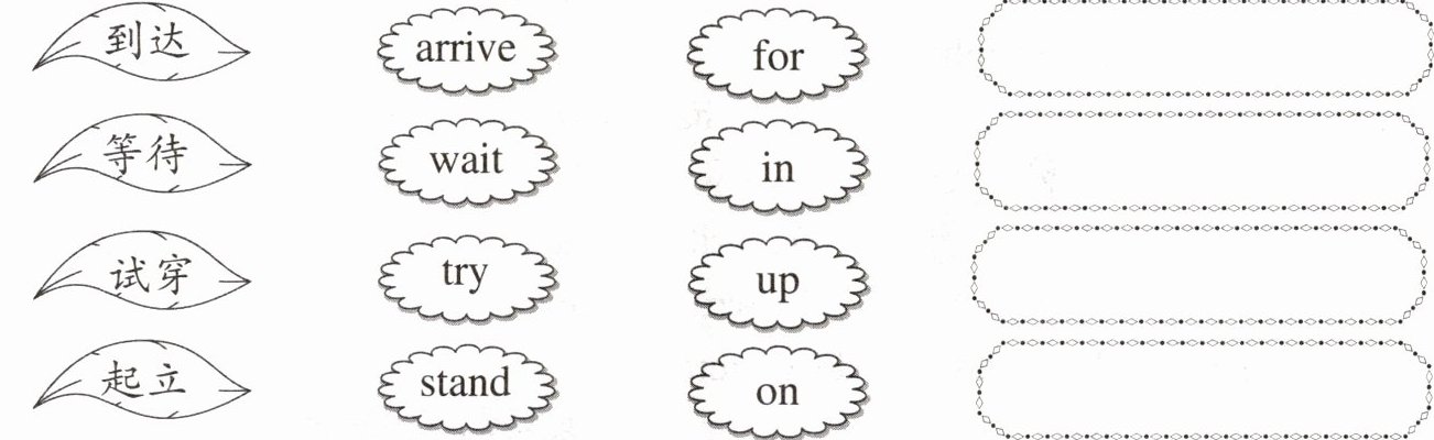 一、读一读,根据汉语提示连线组短语并写一写。