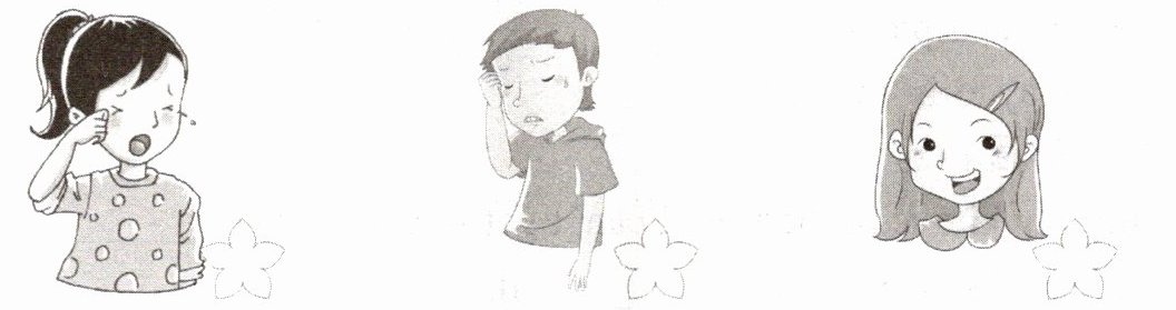 3, 1, 2 1. tired 2. happy 3. sad