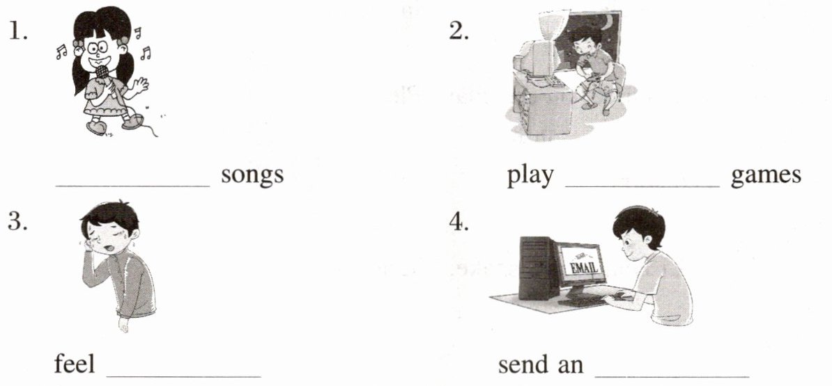 1. sing 2. computer 3. tired 4. email