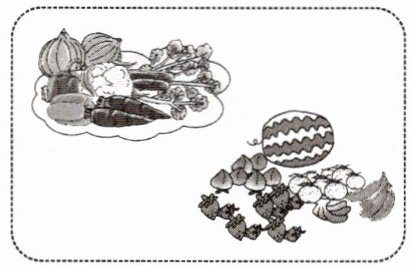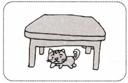 1. under the table 2. an elephant 3. fruit and vegetables 4. some sheep