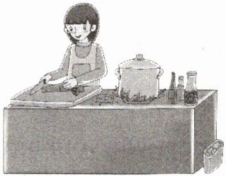 1. ( ) Mum is cooking dinner for us in the kitchen.