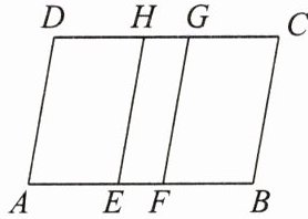 9. 如图,在$□ ABCD$中,$HE// DA// GF$,若$\angle A= 80^{\circ}$,$AE= 2$,$HG= 1$,$GC= 2$,$AD= 4$.